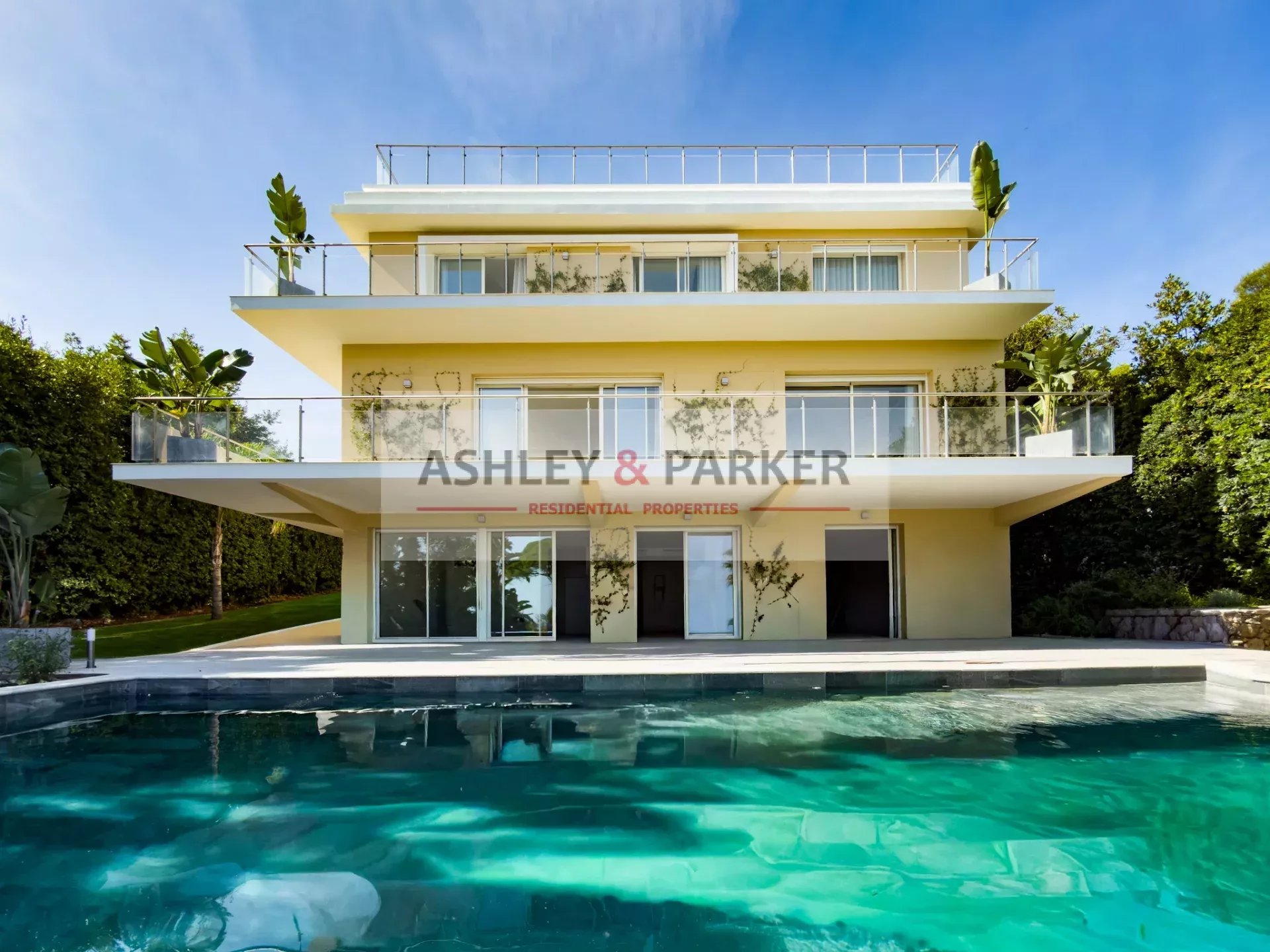 Au CŒUR D’UN DOMAINE PRIVÉ très recherché du Cap d’Antibes, cette PROPRIÉTÉ DE LUXE récemment RÉNOVÉE séduit par son STYLE MODERNE, son CALME ABSOLU et sa VUE PANORAMIQUE SUR LA MER & LA VILLE.